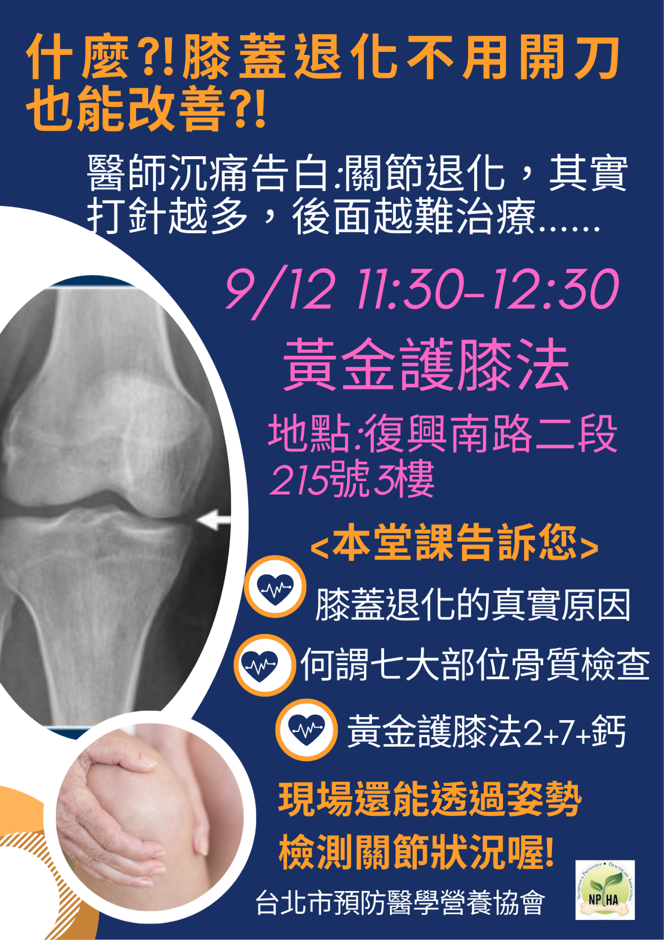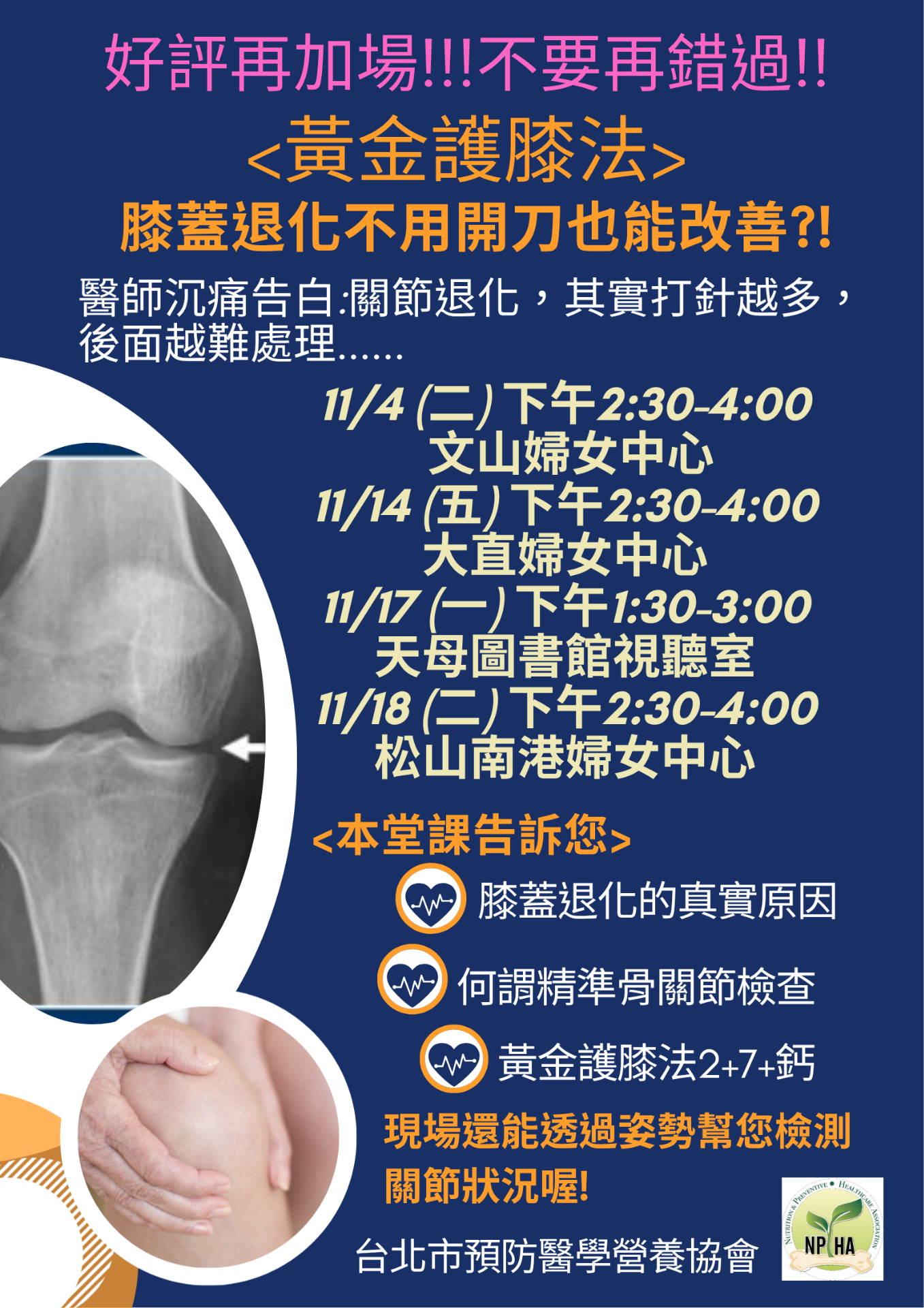 9月免費公益健康講座-黃金護膝法2+7+鈣